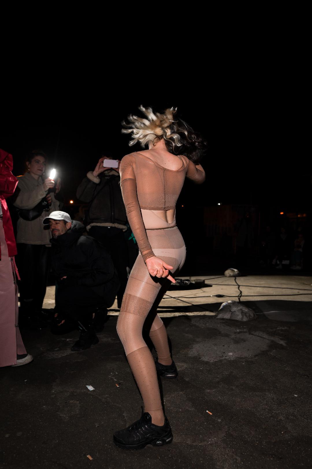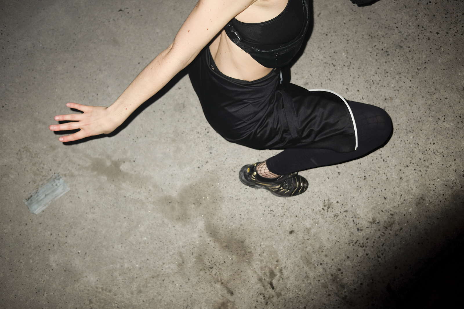 J’aime arriver tôt quand il n’y a pas encore trop de monde et j’aime partir juste avant que les lumières ne se rallument. Je ne vais pas en after, parce que je danse all night long as fuck et qu’à 7h je suis épuisé*e. J’aime rentrer dans la lumière de l’aube. Je ne danse pas près du line-up, c’est trop serré et bouillant. Je danse au fond, là où il y a de l’air et de la place. J’ai un faible pour tout ce qui est surélevé et qui permet de se pendre ou de grimper, et je cherche toujours des copin*es de danse pour des parades de fol*les. Je deviens dingue quand le son est fou, je ne ferme jamais les yeux et je pense toujours à m’hydrater.