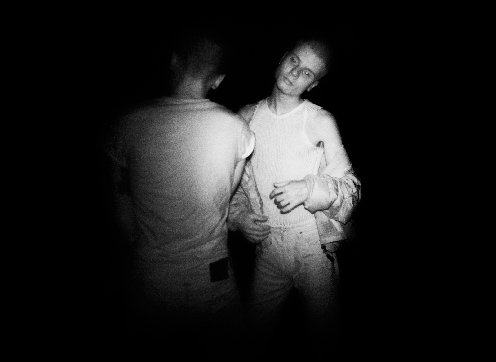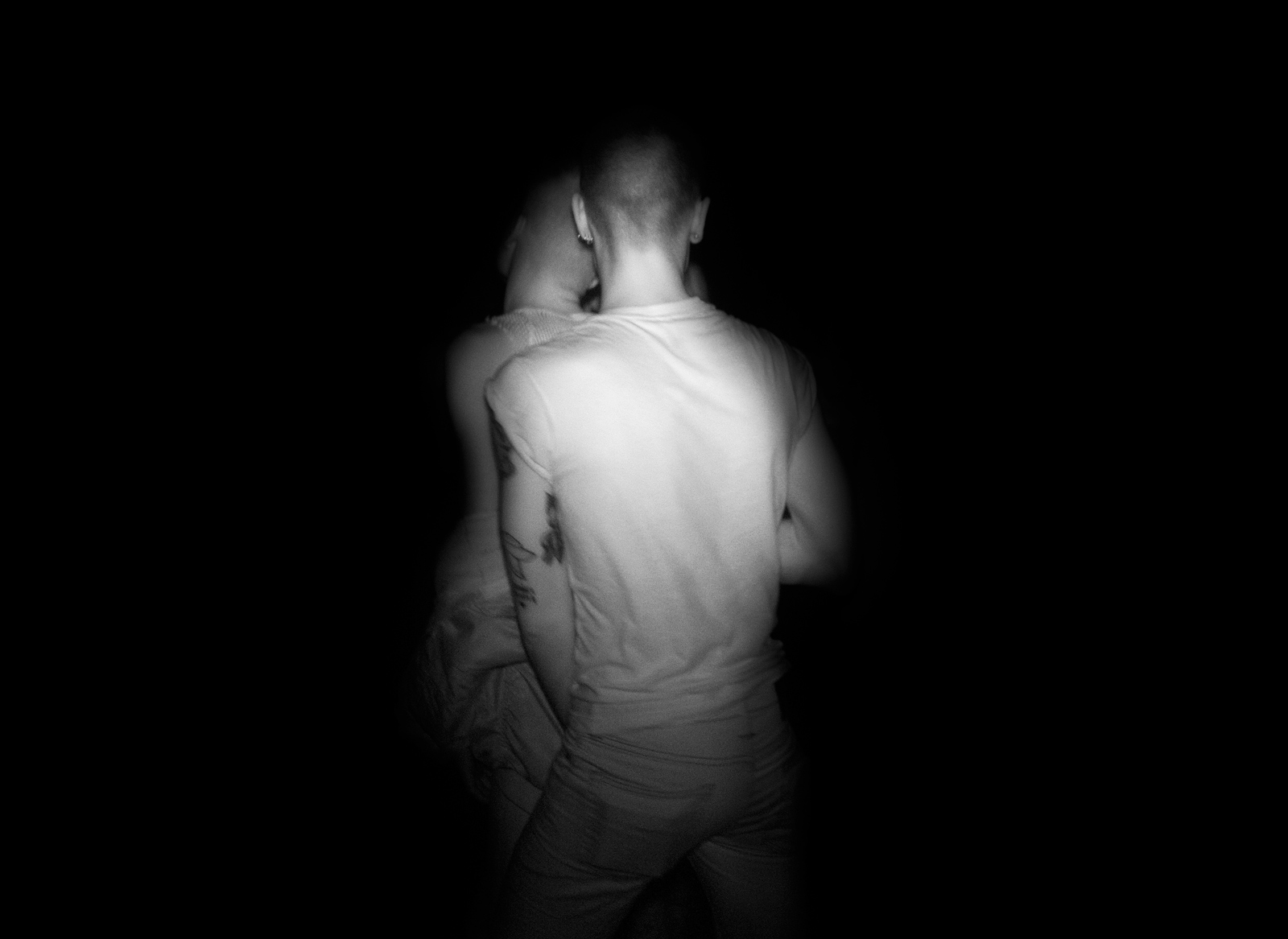 Passée par la philosophie et l’école de photographie d’Arles, Rebecca pose son objectif sur ce qui relie des êtres en groupe, autour de rituels quotidiens, de langages communs et d’espaces vécus ensemble. Observatrice des pogos ultra-violents de concerts métal, hardcore et punk (dont elle nous offre une vision singulière avec La Mêlée), elle scrute les nuits gabbers, éclairées de peu de spots, avec un appareil photo trafiqué afin de ne filtrer que les infra-rouges. Ainsi armée, elle se glisse dans l’obscurité des clubs et caves et vient surprendre, en voyeuriste, presque en voleuse, les corps extatiques dans la transe.